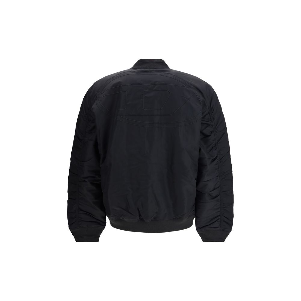 Die J-Held Bomberjacke von Diesel ist aus technischem Stoff gefertigt, der aus zertifiziert recycelten Nylonfasern besteht und damit das Engagement der Marke für Nachhaltigkeit unterstreicht. Leicht gepolstert für Wärme und Komfort, besticht sie durch raffinierte Raffungen an den Ärmeln für zusätzlichen Textur- und Bewegungseffekt. Das tonale, gestickte Oval-D-Logo auf der Rückseite verleiht ihr eine unverkennbare Diesel-Note. Ein modernes und vielseitiges Stück, perfekt für die Saison, um einen mutigen, aber dennoch raffinierten Look zu kreieren.